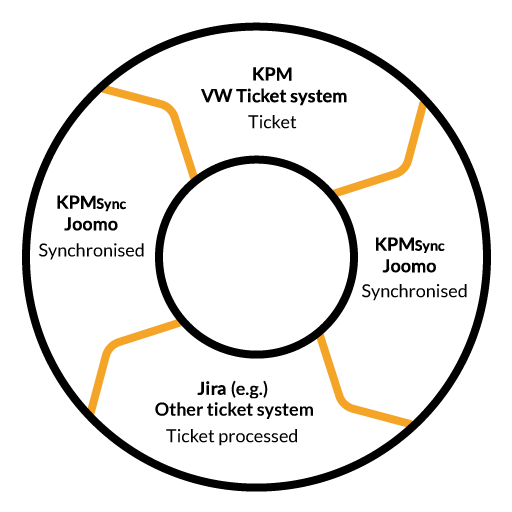 With Joomo’s synchronisation software, ticket systems (error management) such as KPM, Jira, Bugzilla, for example, can be synchronised and enable different companies (customer/supplier) to work together efficiently despite having different systems.