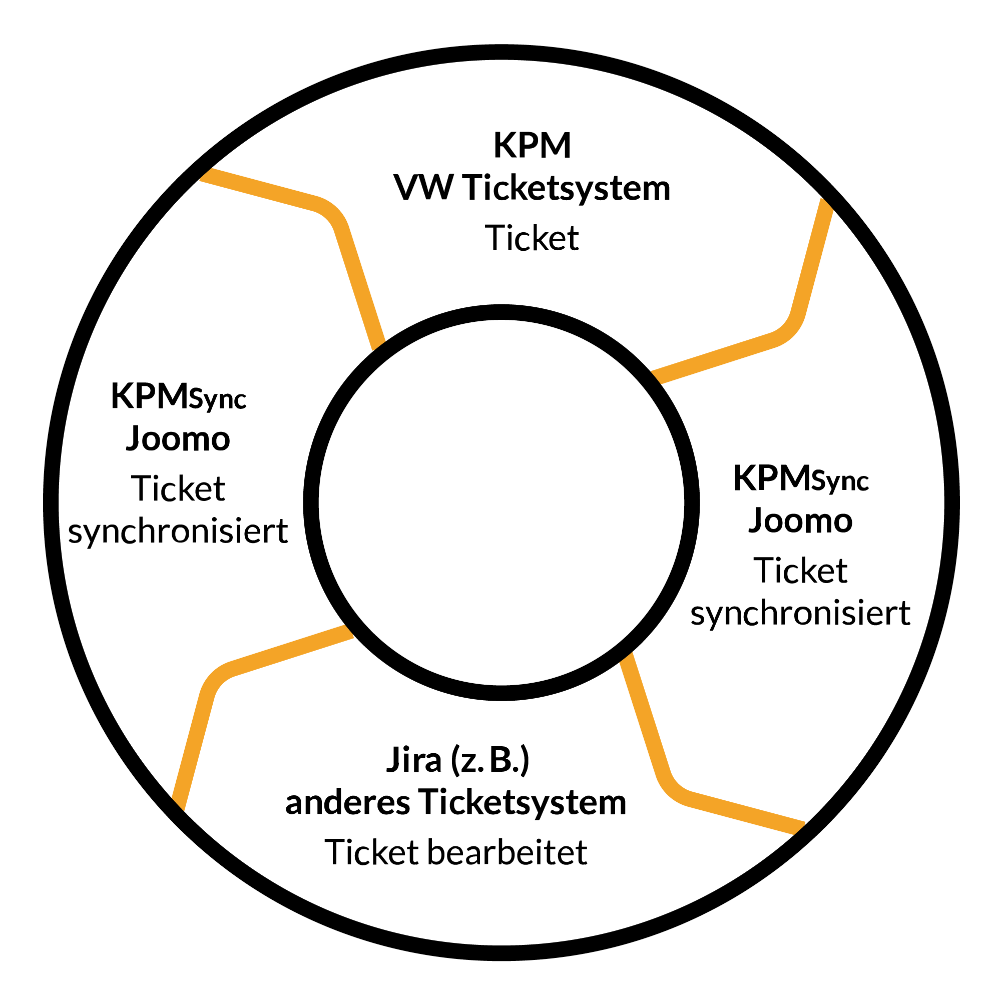 Mit der Synchronisationssoftware von Joomo können Ticketsysteme (Fehlermanagement), wie zum Beispiel KPM, Jira, Bugzilla, synchronisiert werden und ermöglichen unterschiedlichen Unternehmen (Kunde/Lieferant), trotz verschiedener Systeme, eine effiziente Zusammenarbeit miteinander.